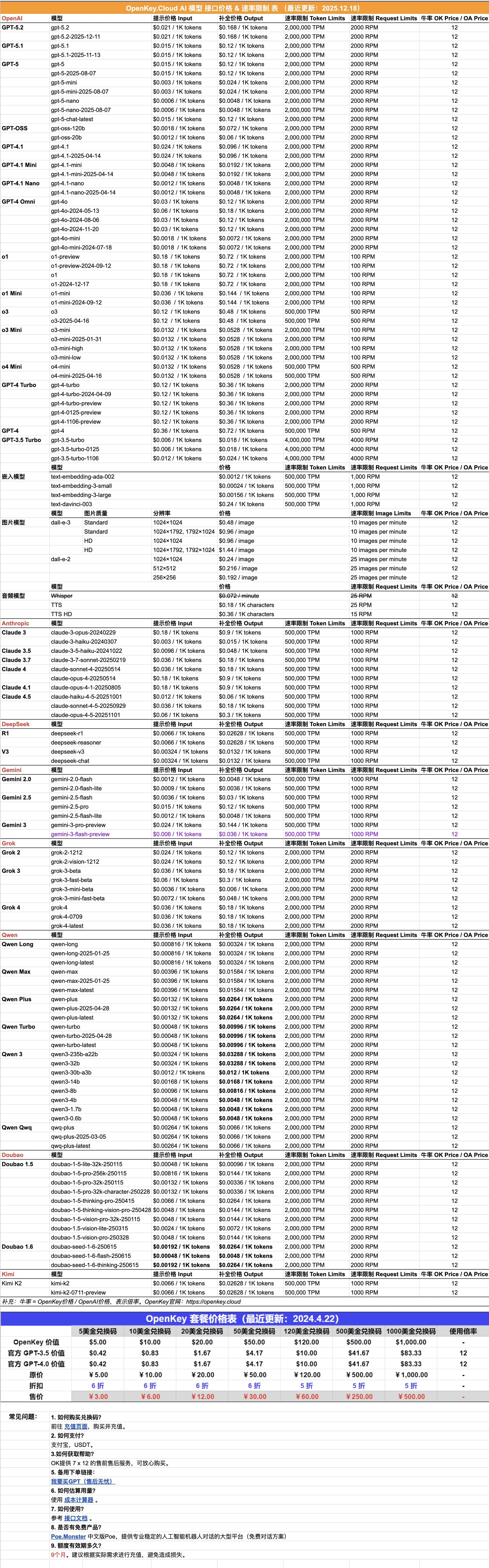 OpenKey普通用户分组使用共享账号池,采用资源抢占型策略。速率限制以账户为标准,而非创建的APIKEY/Token。标准速率如下: