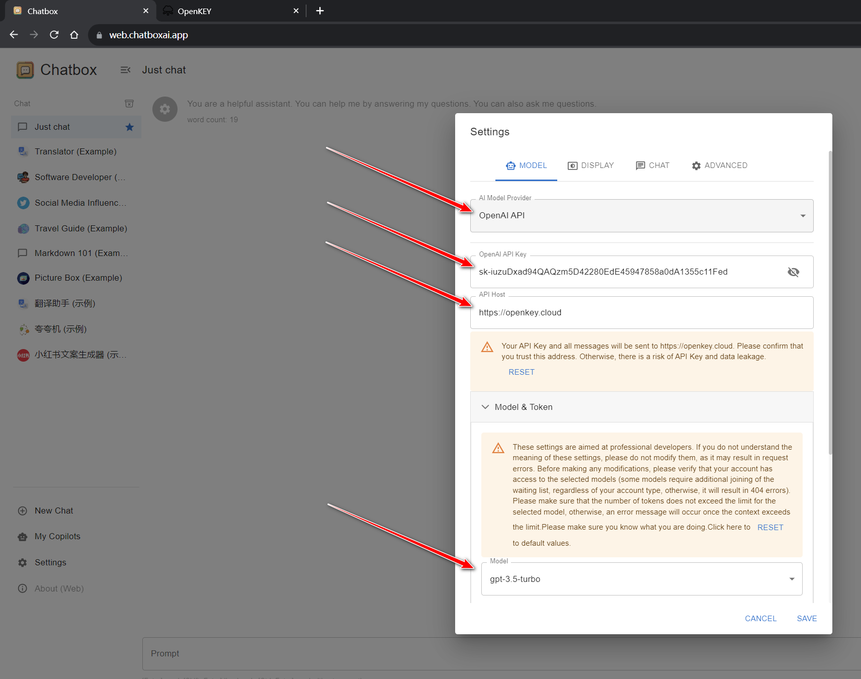 本节将介绍如何使用开源对话工具——ChatBox,配合使用OpenKey的接口进行对话。
